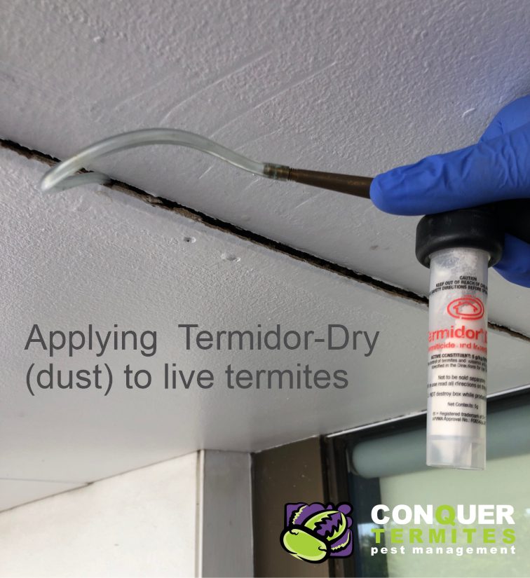 Termidor Dust treatment to live termites in a house in Morningside